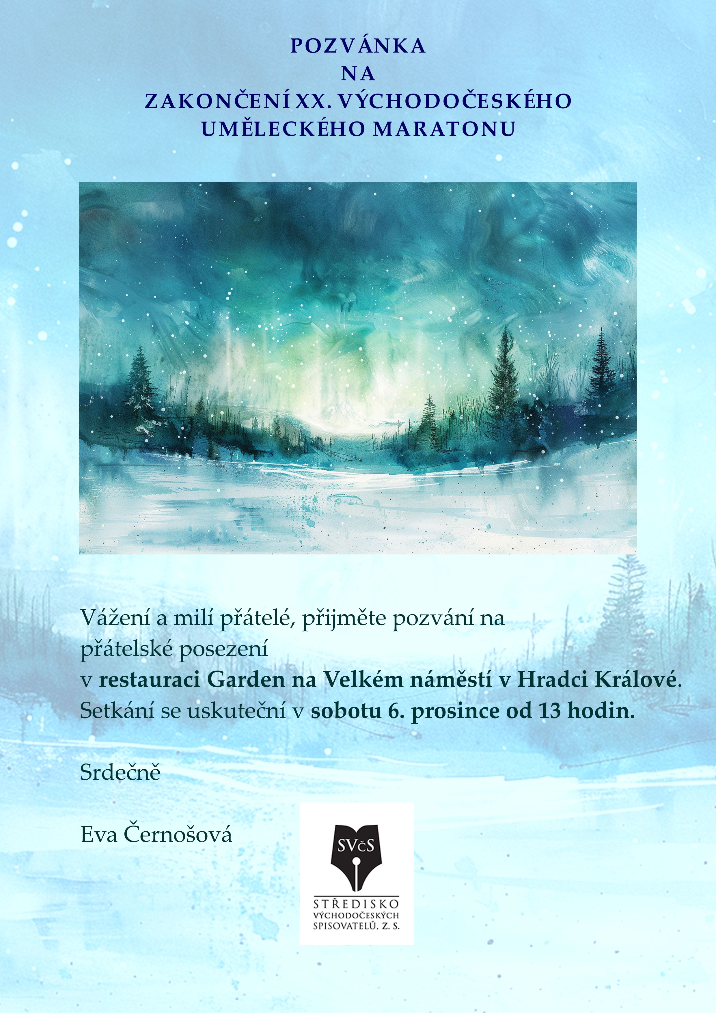 Vážení a milí přátelé, přijměte pozvání na přátelské posezení v restauraci Garden na Velkém náměstí v Hradci Králové. Setkání se uskuteční v sobotu 6. prosince od 13 hodin.